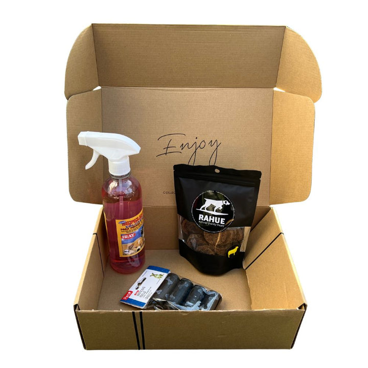 Esta maravillosa caja, es una box ideal para quienes están aburridos que su peludo orine y marque por todos lados. Esta cajita está compuesta por 3 productos esenciales: